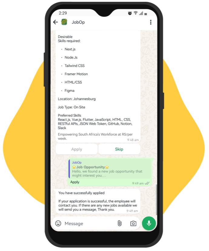 JobOp uses AI to send job alerts directly to your WhatsApp -- no more endless searching.