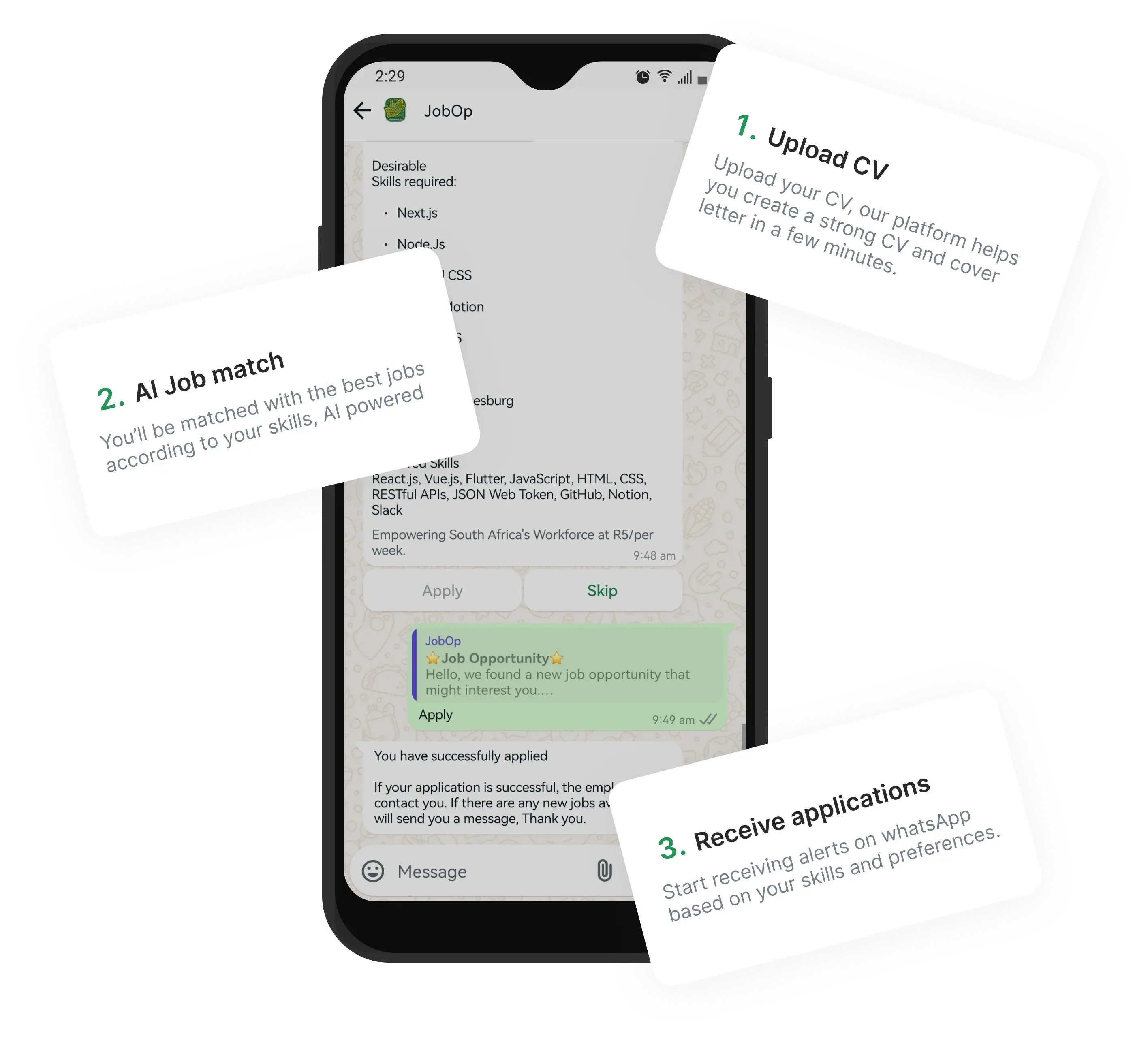 JobOp uses AI to send job alerts directly to your WhatsApp -- no more endless searching.